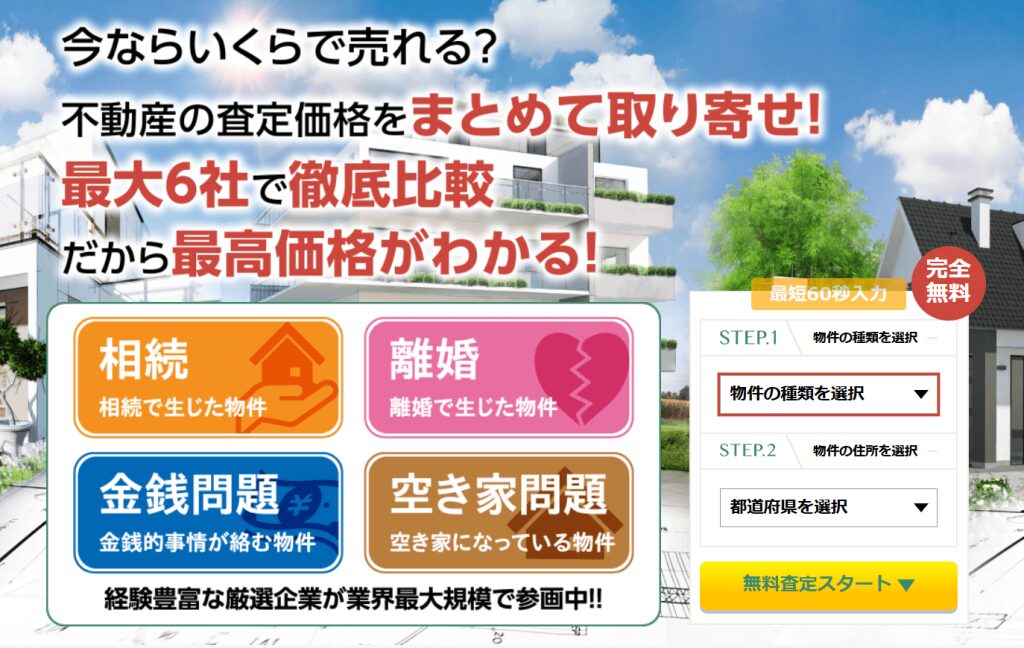 扱いに困る不動産は、所有しているだけで固定資産税などのコストがかかり続けます。まずは無料の一括査定で、あなたの不動産が持つ本当の価値を確かめてみてはいかがでしょうか。思いがけない価格が提示され、悩みが一気に解決するかもしれません。